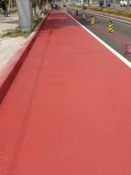 丙烯酸彩色路面漆水泥路面、旧彩色沥青路面干燥快、色彩鲜艳、耐候性好、成本低耐磨性一般,适合人行道、慢行道